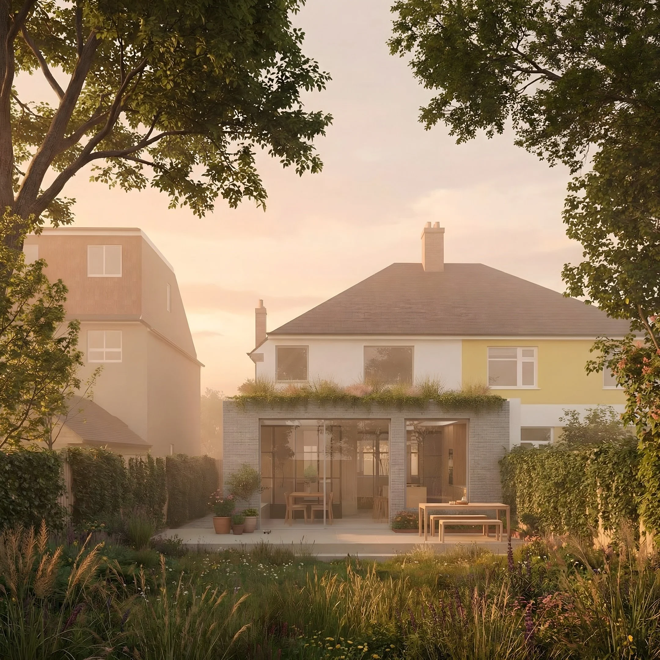 The existing internal arrangement was constrained and no longer suited to family life, with a kitchen that was limited in size and poorly connected to the garden. The proposed extension reconfigures the ground floor to create a generous, open and practical kitchen-dining space, supported by a well-located utility room that helps to reduce clutter and improve circulation throughout the home.