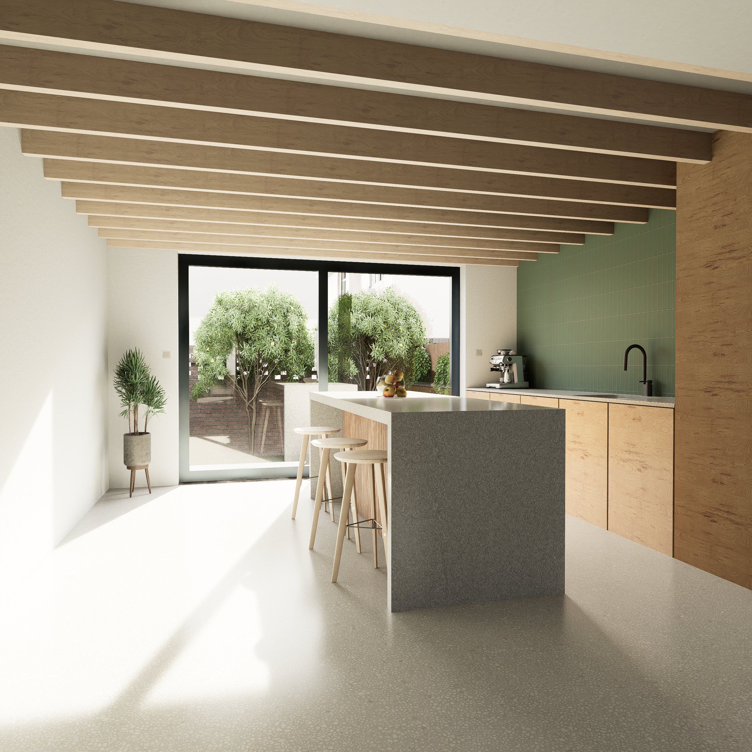 Working with an end-of-terrace property in Morden, Sutton, the project explored the opportunity to utilise the generous side garden as an infill site for a new dwelling. The client’s ambition was to maximise the potential of the plot while maintaining a sensitive and considered response to the existing residential context.